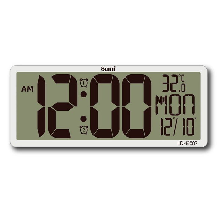 Reloj SAMI LCD blanco con diseño para sobremesa y pared. El formato XXXL garantiza una excelente visibilidad desde cualquier ángulo. Es un producto ideal para uso en hogar u oficina.