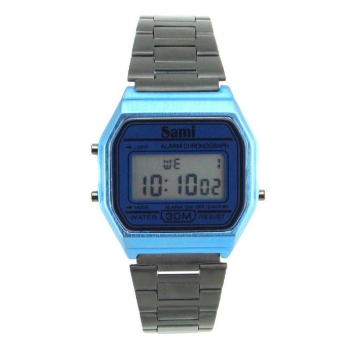 SAMI Reloj LCD Retro Azul IPBLUE / Negro IPB W - Cronómetro y Resistente al Agua