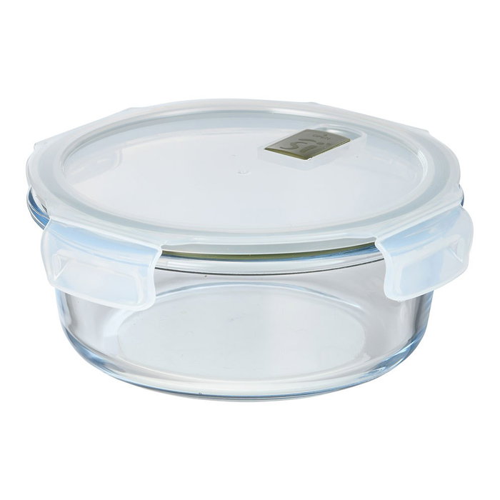 San Ignacio Fiambrera Hermética Redonda de Borosilicato Experto 950ml, Ø18.4x7.6cm, 4 Cierres, Válvula, Apilable, Apta Lavavajillas, Congelador, Horno y Microondas