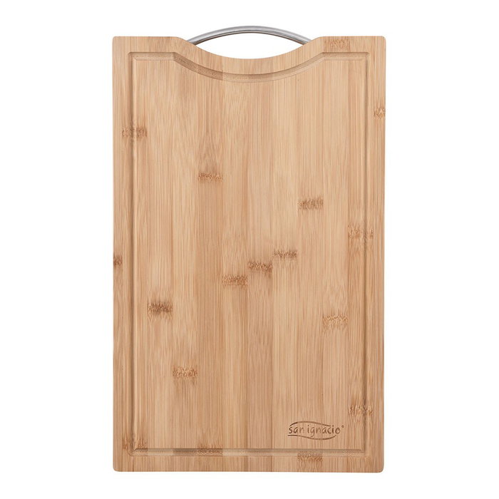 San Ignacio Tabla de Cortar de Bambú Experto con Agarradera de Acero Inoxidable 430, 40 cm x 25 cm x 1.9 cm