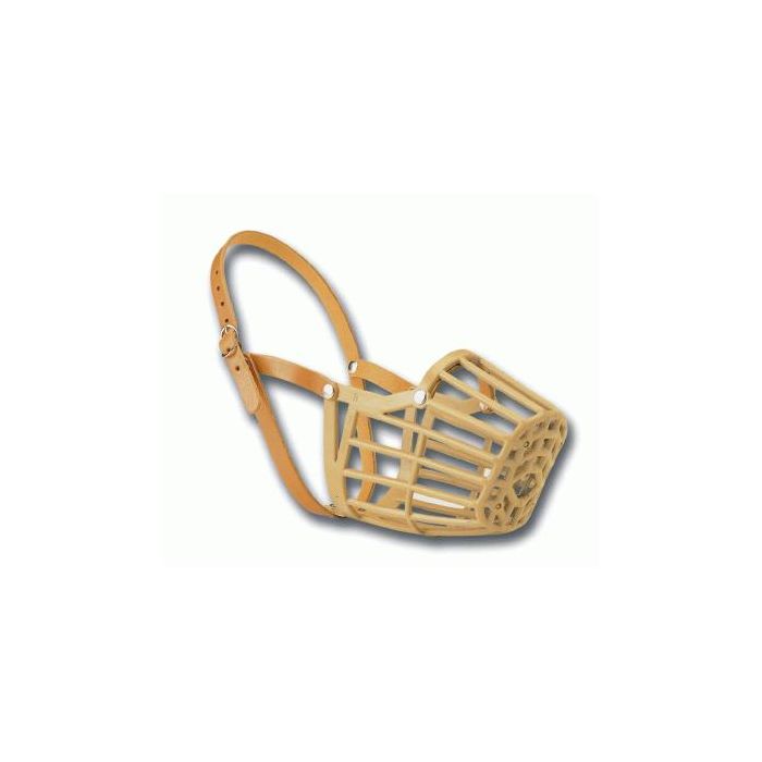 El bozal es muy fácil de poner y quitar gracias a su sistema de cierre. Está fabricado con cuero y plástico duraderos y resistentes.