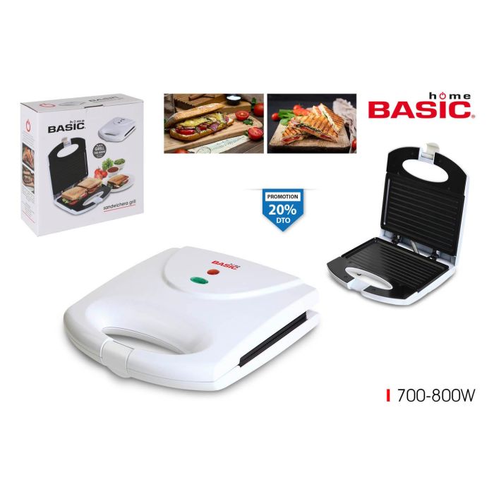 Ver todas las marcasBasic Home Sandwichera Plana Blanca 700-800 W, 21.8 x 21.5 x 6.5 cm (4 Unidades)