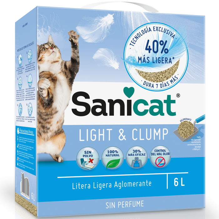 Sanicat Arena Aglomerante Light & Clump 6lt para Gatos, Sin Polvo, Absorción Eficaz