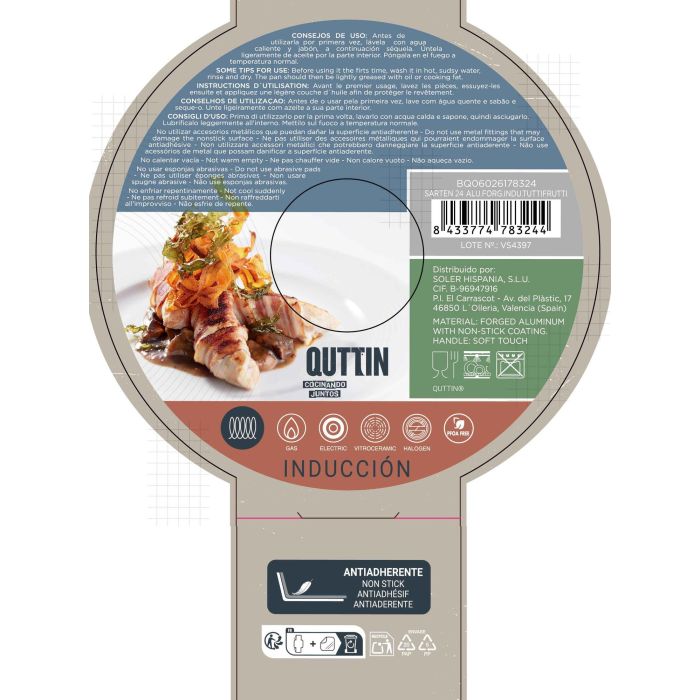Quttin Sarten Tuttifrutti de Aluminio Forjado para Inducción 24 cm - Colección 909 (6 Unidades)