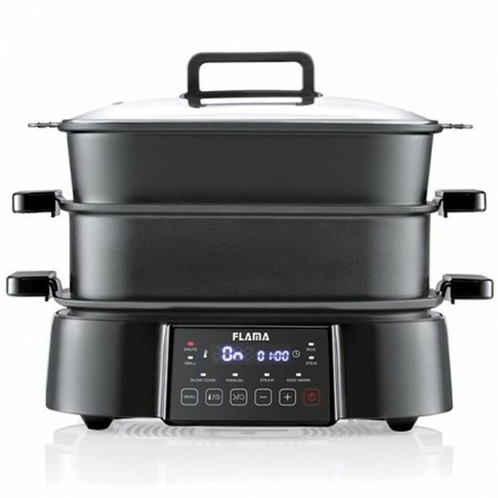 La Sartén Eléctrica Multiusos 8EN1 de Flama es un electrodoméstico versátil diseñado para cocinar con eficiencia y practicidad, incorporando funciones de cocina, grill y vapor en un solo dispositivo. Su potencia de 1250 W garantiza un calentamiento rápido y homogéneo, permitiendo preparar una gran variedad de platos con resultados consistentes. Presentada en un elegante acabado negro, esta sartén eléctrica dispone de conectividad mediante enchufe EU, adaptada a la mayoría de hogares europeos. Su diseño multifuncional facilita la preparación de alimentos ágil y saludable, ya sea para freír, asar a la parrilla o cocinar al vapor, favoreciendo así tanto texturas crujientes como platos más ligeros y nutritivos. Además, su estructura está pensada para ofrecer comodidad en el uso diario, con controles sencillos que permiten regular la temperatura y adaptar la cocción a distintas recetas. La sartén es compatible con funciones que optimizan la distribución del calor y mejoran el aprovechamiento energético, aportando un equilibrio entre consumo y eficacia. Este producto destaca por su capacidad de integrar tres modos de cocinado en un único equipo compacto, adecuado para espacios reducidos o usuarios que buscan simplificar su equipamiento de cocina sin perder funcionalidad ni potencia. La Multi-cazuela Flama 8EN1 es una solución práctica para quienes desean una herramienta multifuncional, que cubre diferentes necesidades culinarias con un rendimiento fiable y un diseño cuidado. En definitiva, es una opción equilibrada dentro del segmento de sartenes eléctricas que reúne adaptabilidad, potencia y facilidad de uso para enriquecer la experiencia culinaria cotidiana.