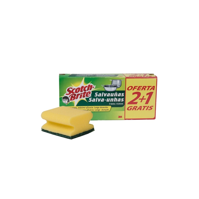 Scotch Brite Estropajo Salvauñas Fibra Verde Paquete 2+1 Gratis