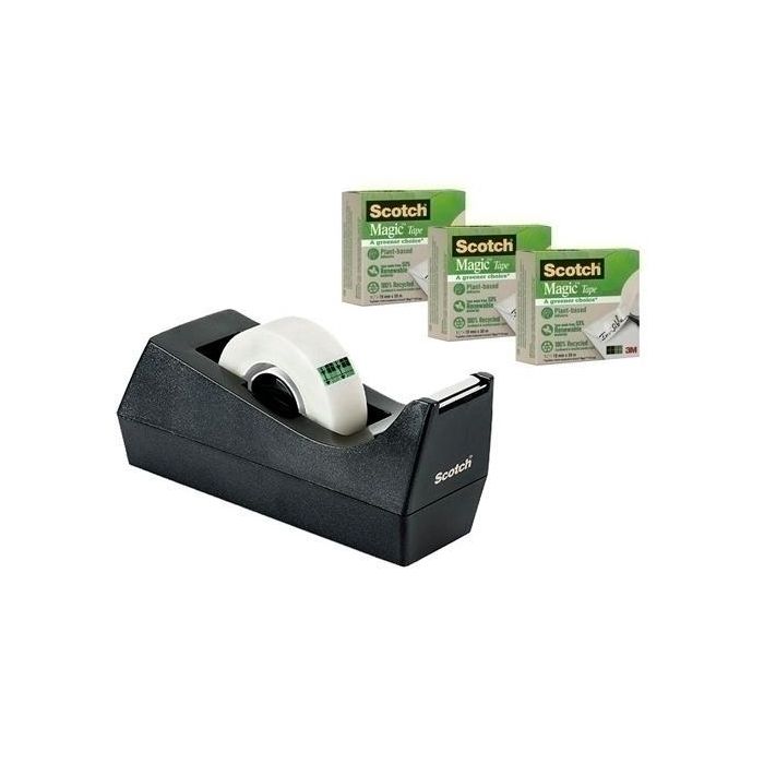 Scotch Dispensador Portarrollos C38 Negro + 3 Cinta Magica 900