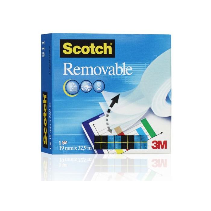 Scotch 7000029163 Rollo Cinta Invisible Reutilizable 19 mm x 33m Transparente Caja Cartón