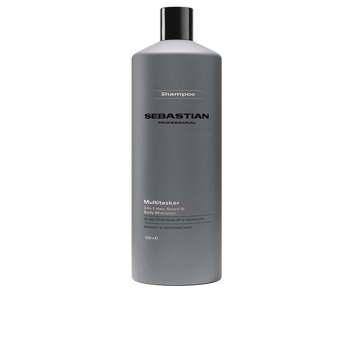 Sebastian Professionals MULTITASKER Champú 3-en-1 para Hombre - Limpia Cabello, Barba y Cuerpo con Aroma a Bergamota y Pimienta Rosa, 1000 ml