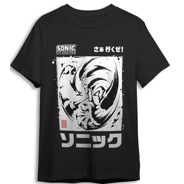 SEGA Camiseta Sonic the Hedgehog Black Brush Adulto Talla L Algodón 100% 165 g