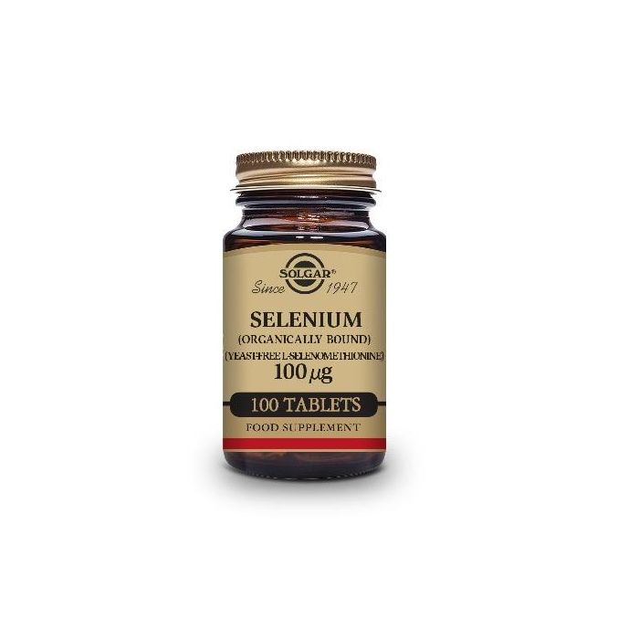 Descubre los beneficios del SELENIO 100mcg. Comprimidos de Solgar, un complemento alimenticio de alta calidad diseñado para contribuir a la salud de tu cabello y uñas. Este mineral esencial, presentado en comprimidos fáciles de tomar, es ideal tanto para hombres como para mujeres, apoyando además el correcto funcionamiento del sistema inmunitario.