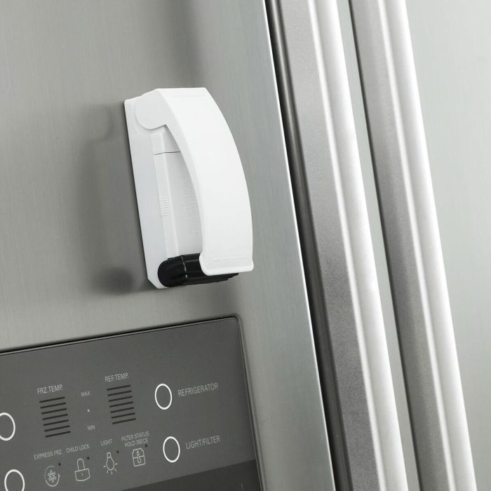 Una selladora de bolsas con imán para nevera que permite cerrar herméticamente las bolsas de alimentos, prolongando y mejorando su conservación sin perder sus propiedades. Por su diseño ligero, compacto y portátil, es muy fácil de usar, transportar y guardar en cualquier parte.