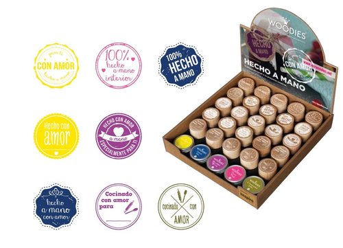 Sello Colop Woodies Ø30Mm Motivos Variados De Hecho A Mano Expositor De 25 Contiene 25 Sellos Y 5 Tampones De Colores Surtidos)