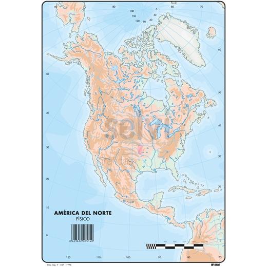 Selvi Mapa Mudo Físico De America Del Norte A4 -50U-