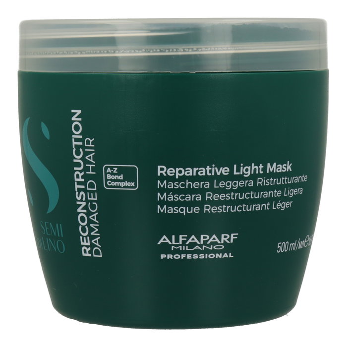 Mascarilla profesional de tratamiento intensivo formulada para reconstruir fortalecer y reparar profundamente el cabello dañado debilitado o sensibilizado por procesos químicos térmicos o mecánicos.