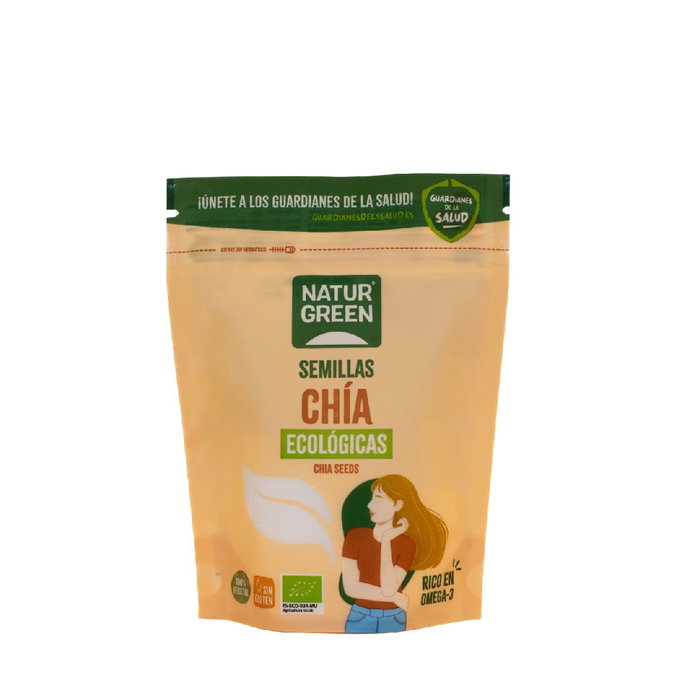 Semillas para consumo directo, no germinar. Las Semillas de Chía Bio de NaturGreen son un alimento imprescindible en cualquier dieta saludable. Estas pequeñas semillas están repletas de nutrientes esenciales, convirtiéndolas en un superalimento con numerosos beneficios para la salud. Son una excelente fuente de fibra, proteínas, ácidos grasos Omega-3 y antioxidantes, lo que las hace ideales para mejorar la digestión, fortalecer el sistema inmunológico y mantener una piel sana.