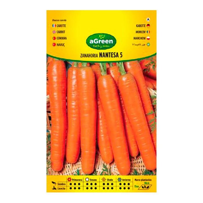 Agreen Sobre de semillas Zanahoria Nantesa sin corazón, dulces y de piel fina, color anaranjado intenso