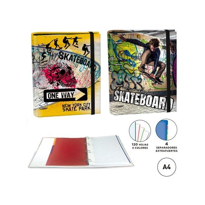 Senfort Carpeta Anillas 4x30 mm Ringbook C-Recambio 120H A4 C-Goma 4 Separadores Skateboard Surtido