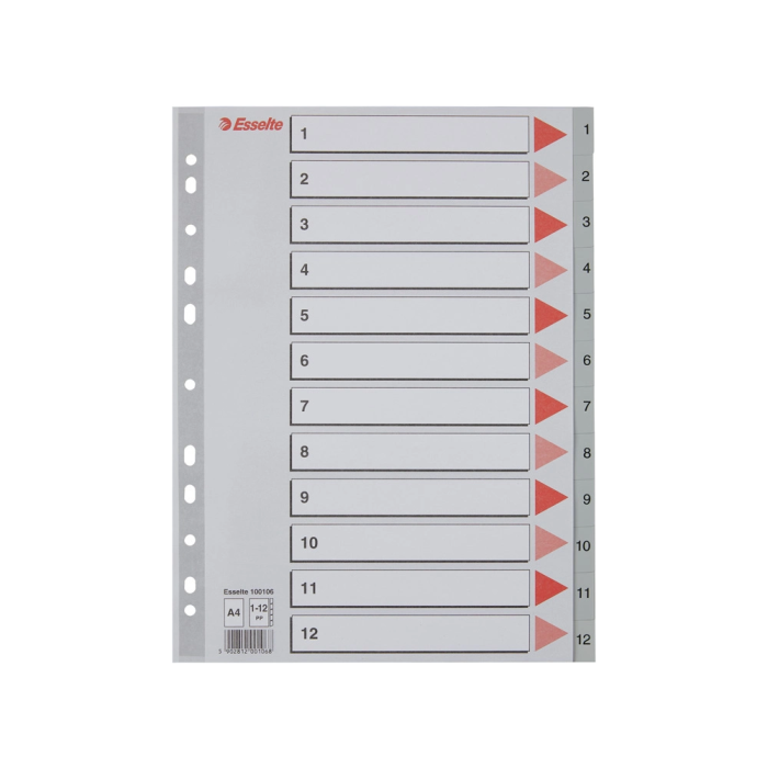 Esselte Separador Numerico 1-12 Cartulina Folio Juego de 12 Separadores Multitaladro