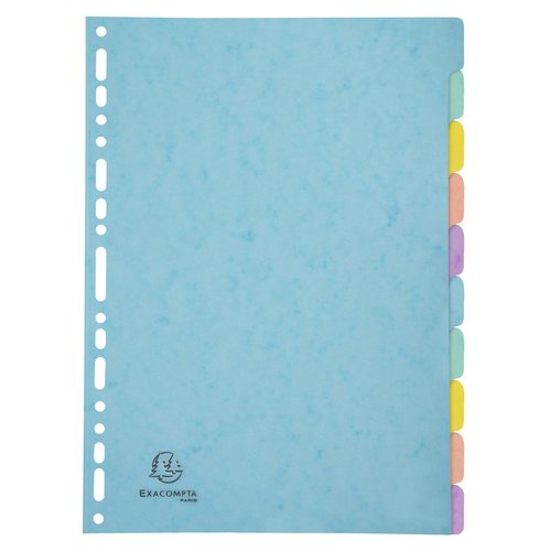 Separadores neutros Aquarel en cartulina lustrada de 400 g/m², que permite un uso intensivo. Incluye la página del índice.