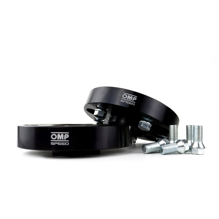 COLOR Y MATERIAL: Separadores de llantas OMP color negro con el logotipo OMP Speed en color blanco. Separadores OMP fabricados en aluminio forjado 6061-T6 (el más resistente del mercado) con una capa de pintura negra térmica protectora anti-corrosión. Son separadores de rueda recomendados para usar principalmente en llantas de aluminio.