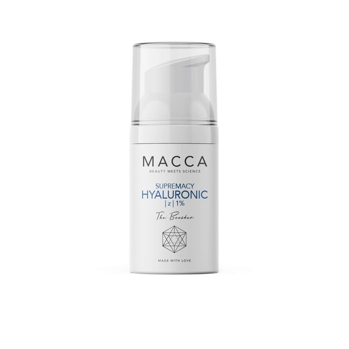 Descubre el poder del SUPREMACY HYALURONIC the booster de MACCA, un sérum intensivo que maximiza la hidratación de tu piel. Este innovador tratamiento facial, enriquecido con un 1% de ácido hialurónico de alta y baja peso molecular, es la solución perfecta para combatir la deshidratación.