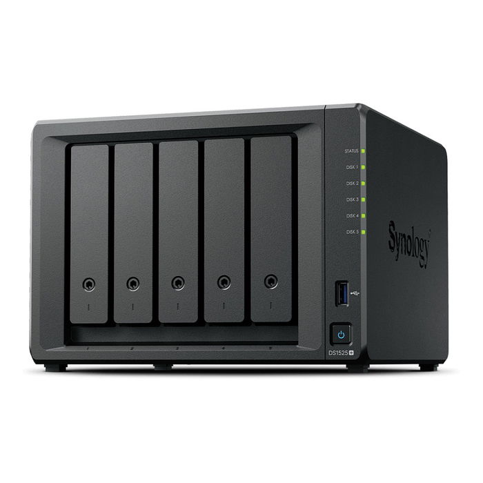Synology DS1525+ NAS de 5 Bahías, Ryzen Embedded V1500B, 8 GB DDR4, RAID, 2 x 2.5GbE, HDD/SSD, Máx. 300 TB