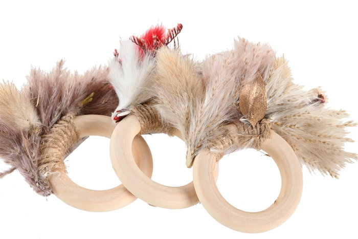 DKD Home Decor Servilletero Madera Flor Seca Marron Rojo Beige 2 x 8 x 8 cm (12 Unidades)