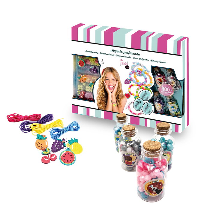 Un nuevo concepto de crear joyas con cuentas y con olores diferentes, doble de diversión y de creación con estilo. Este juego incluye colgantes con 4 olores diferentes, cuentas perfumadas, recipientes reutilizables y cintas de malla. Orientado a niños desde los 5 años.
