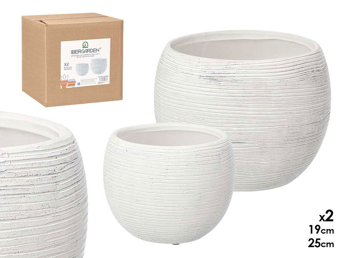 SET 2 MACETAS RAYADA BLANCO 19 25CM