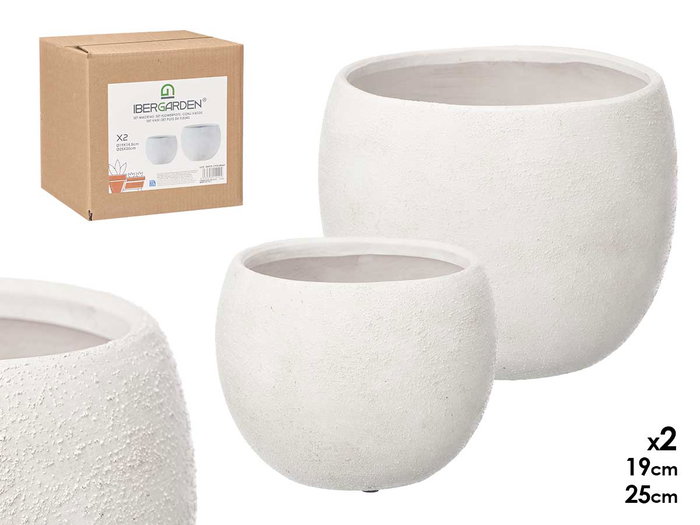SET 2 MACETAS RUGOSA BLANCA 19 25CM