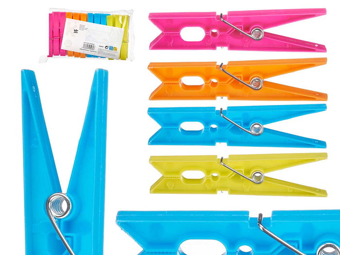 Arte Regal Set de 24 Pinzas Grandes de Plástico con Muelle para Manualidades y Oficina, Colores Azul/Naranja/Rojo/Verde, Dimensiones 15x29x4.5 cm (Set de 24)
