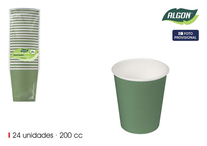 Algon Set 24 Vasos de Cartón Verdes 200 cc (18 Unidades)