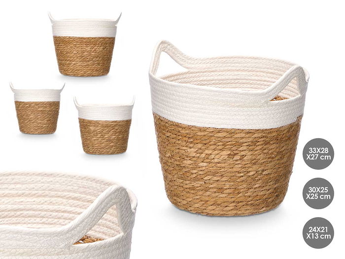 SET 3 CESTOS REDONDOS ASAS 29CM ALTO BLANCO