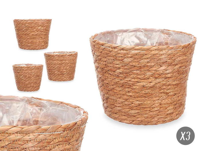 Giftdecor Set 3 Cestos Redondos Esparto Medianos Pequeños 23x18x23cm Natural (Set de 8)