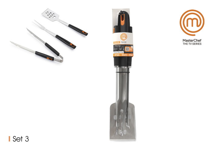 Masterchef Set 3 Utensilios Barbacoa para Cocinar al Aire Libre con Mango Largo y Diseño Robusto (12 Cajas)