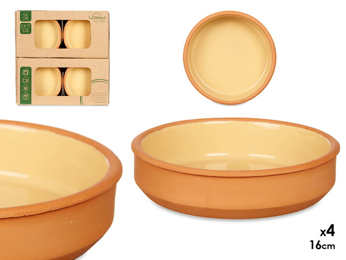 SET 4 CAZUELAS BARRO 16 CM COLOR MOSTAZA