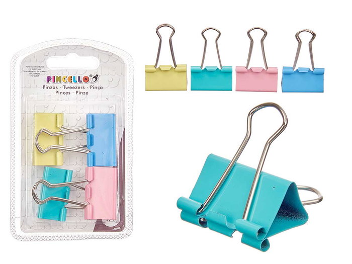 Pincello Set 4 Pinzas Clip Color Pastel 7.5 x 12.5 x 2 cm Metal Multicolor (Set de 24)