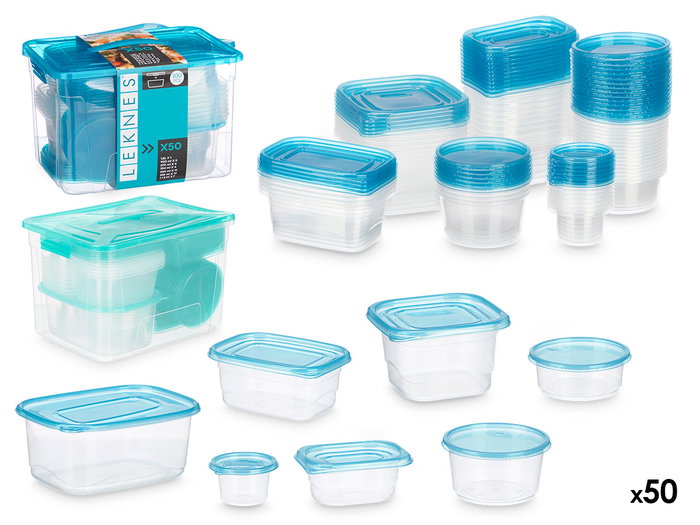 Leknes Set 50 Fiambreras Asa Surtidos Colores Plástico PP 32 x 23.5 x 21 cm (Set de 4)