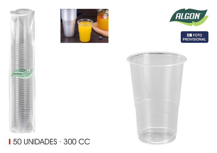 Algon Set-50 Vasos Transparentes 300 cc 7.5 x 10.5 cm (18 Unidades)