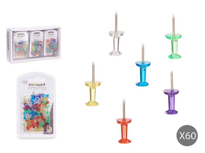Pincello Set 60 Chinchetas Color Transparente 2.5 x 11.5 x 1.5 cm Plástico y Metal (Set de 24)