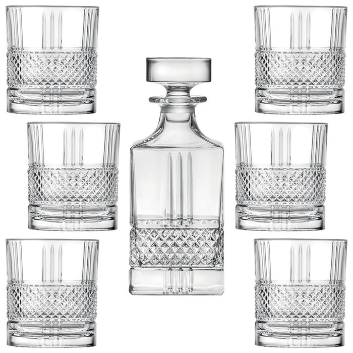 Rcr Cristalleria IT Set 7 Pzs Whisky Botella Y Vasos Colección Brillante Luxion Eco-Crystal Glass 850ml + 6x340ml