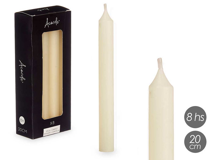 SET 8 CIRIOS CREMA 20 CM 8 HORAS
