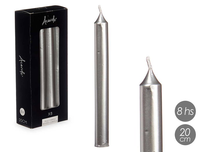 SET 8 CIRIOS PLATA 20 CM 8 HORAS