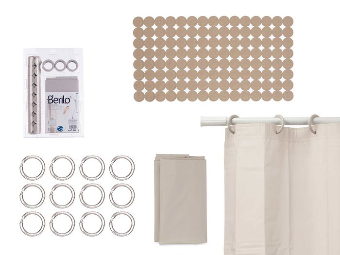 SET BAÑO CORTINA PEVA Y ALFOMBRA DUCHA BEIGE