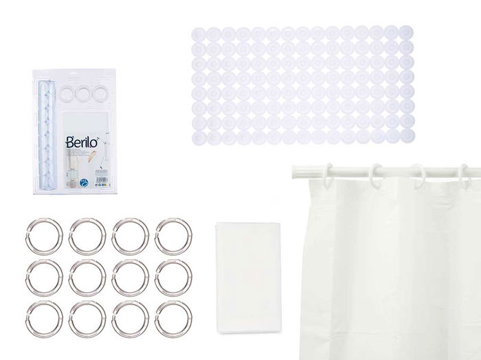 SET BAÑO CORTINA PEVA Y ALFOMBRA DUCHA BLANCO