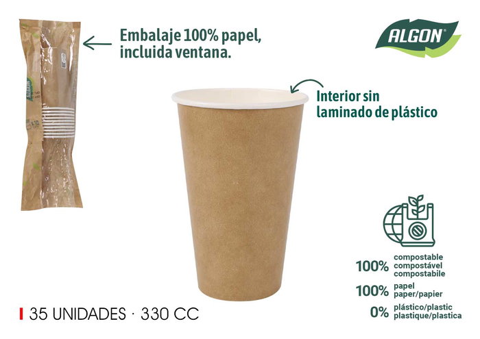 Algon Set 10 Vasos Cartón Kraft 330 cc (20 Unidades)