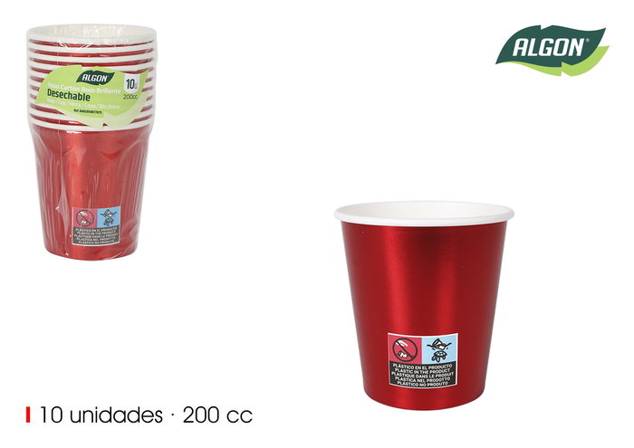 Set-10Vaso Carton Rojo Brillo 200Cc Algon