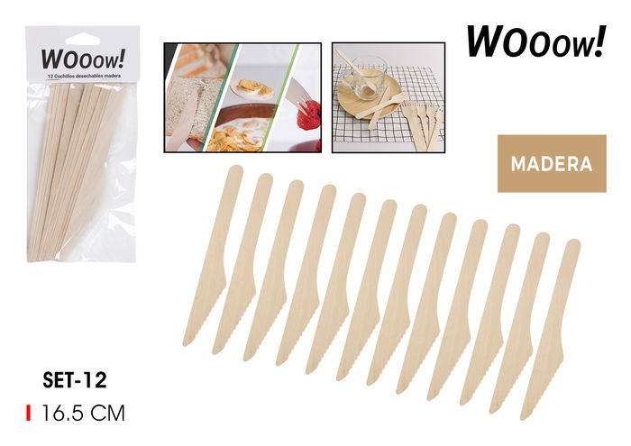 Set-12 Cuchillos Desechables Madera Wooow
