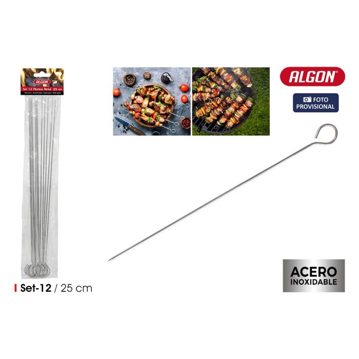 Set-12 Pinchos Metal Barbacoa 25Cm Algon Bbq